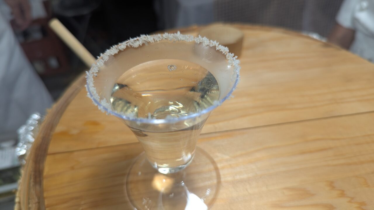 レストランカズマルヤマさんの「トリュフ樽酒」は香り高く、塩付きグラスでいただく一杯は格別。ホットワインもスパイスが効いていて、寒空の下で心まで温まりました。