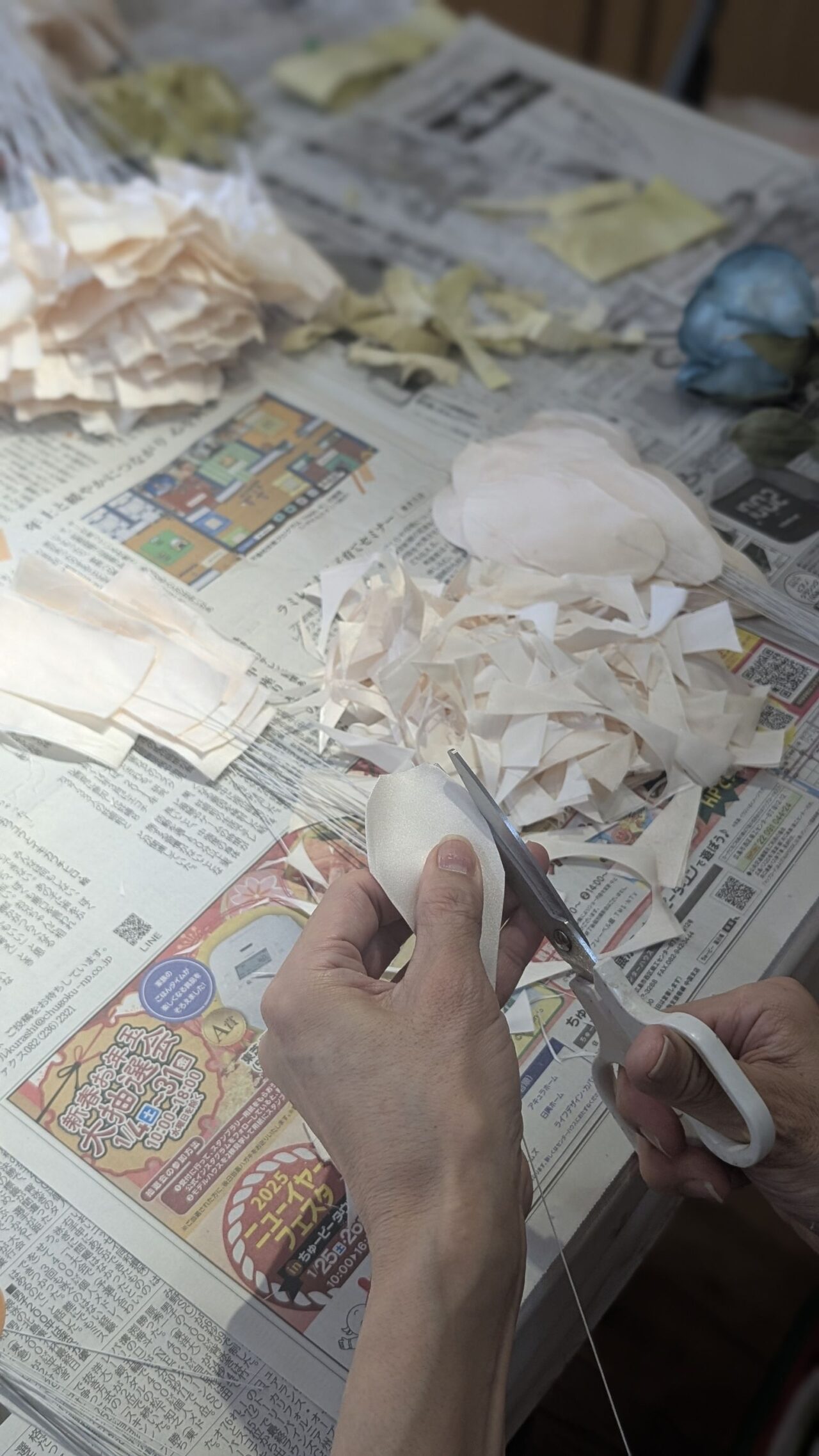 2年に一度開催される布花展に向けて、テーマとなる花を題材に、参加者の皆さまと共にひとつの作品世界をつくりあげる「布花プロジェクト」。