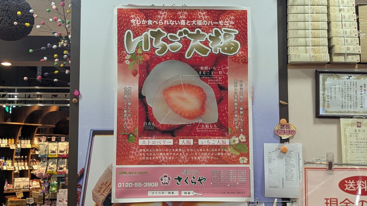 東広島市で長年親しまれている老舗和菓子店「お菓子の蔵さくらや」では、季節限定のいちご大福やバレンタイン向けの特別商品が注目を集めています。ゆめタウン東広島店にいってきたのでご紹介します。